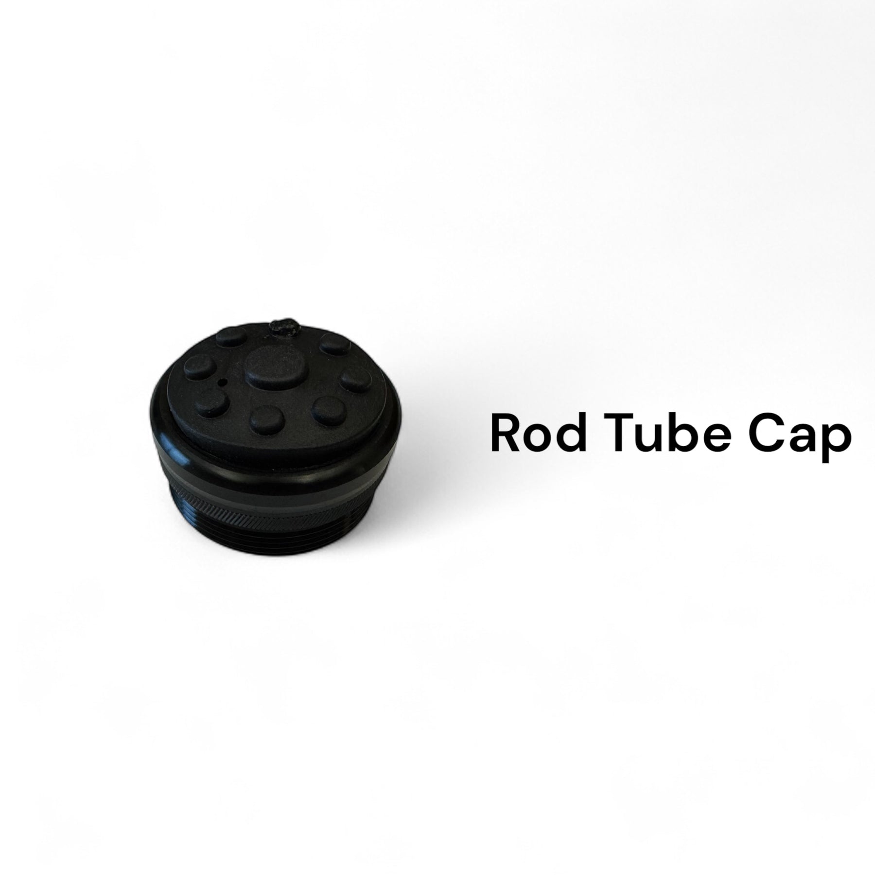 Black replacement rod tube cap for the Wasatch Tenkara Rods RodZilla, featuring a durable threaded design and molded grip pattern—designed to securely seal and protect your rod tube during transport and storage.