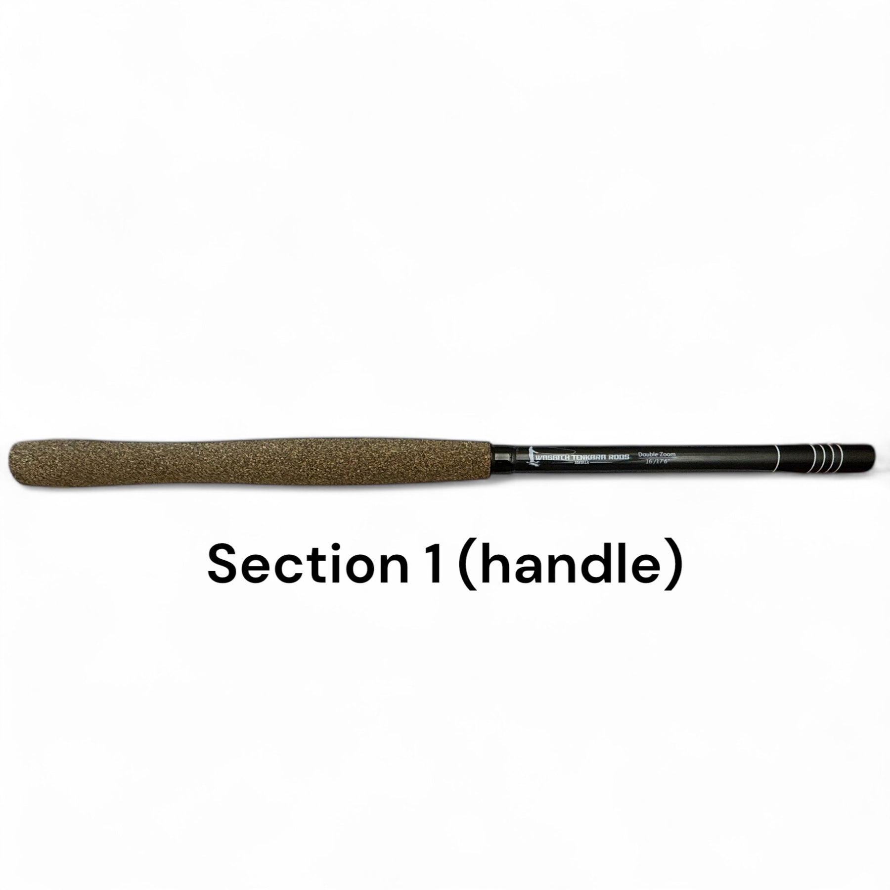 Replacement Section 1 handle for the Wasatch Tenkara Rods RodZilla, featuring a long textured grip and labeled black carbon fiber body—engineered for comfort, control, and compatibility with the full RodZilla rod setup.