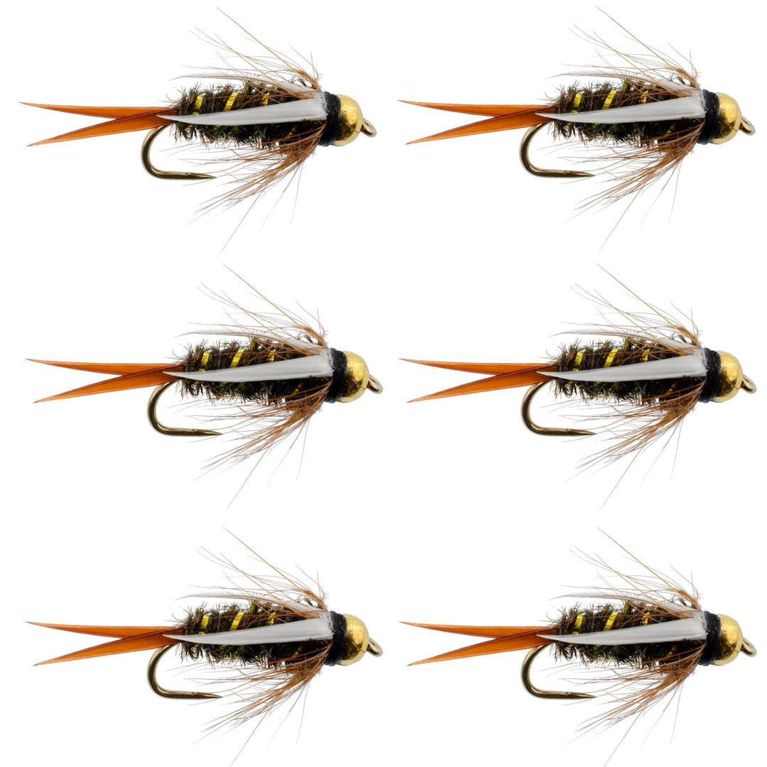 Pack of 6 Barbless Bead Head Prince Fly Fishing Flies Hook Size 14