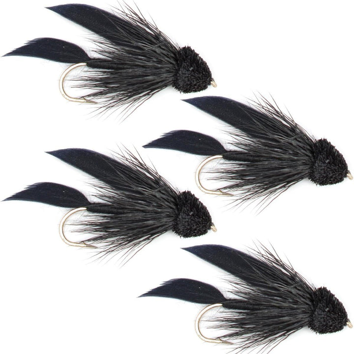 Black Muddler Minnow Fly Fishing Flies - Classic Streamers - Set of 4 Flies Hook Size 6