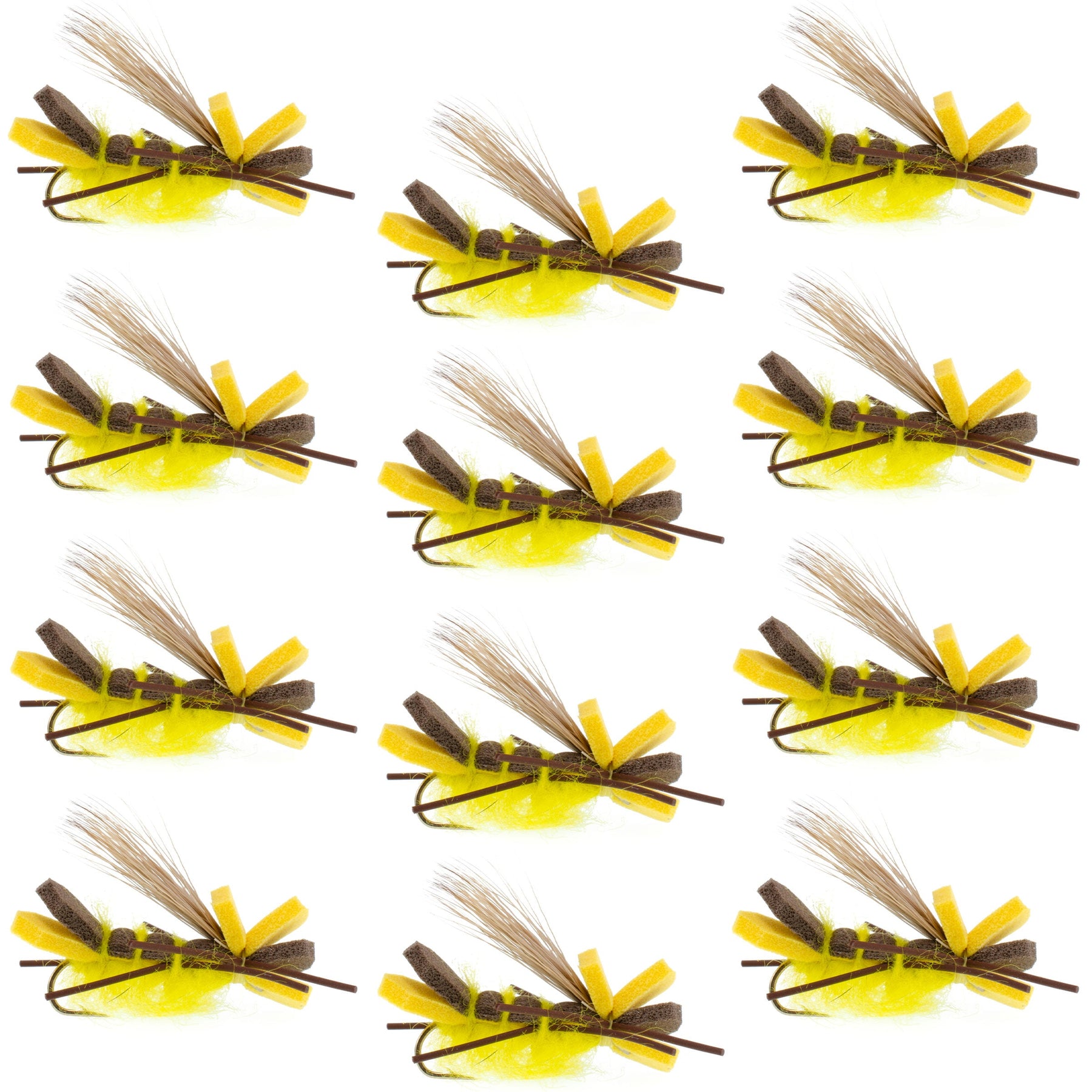 Yellow Godzilla Hopper - Foam Grasshopper or Adult Salmonfly Fly Pattern - 1 Dozen Flies Hook Size 10