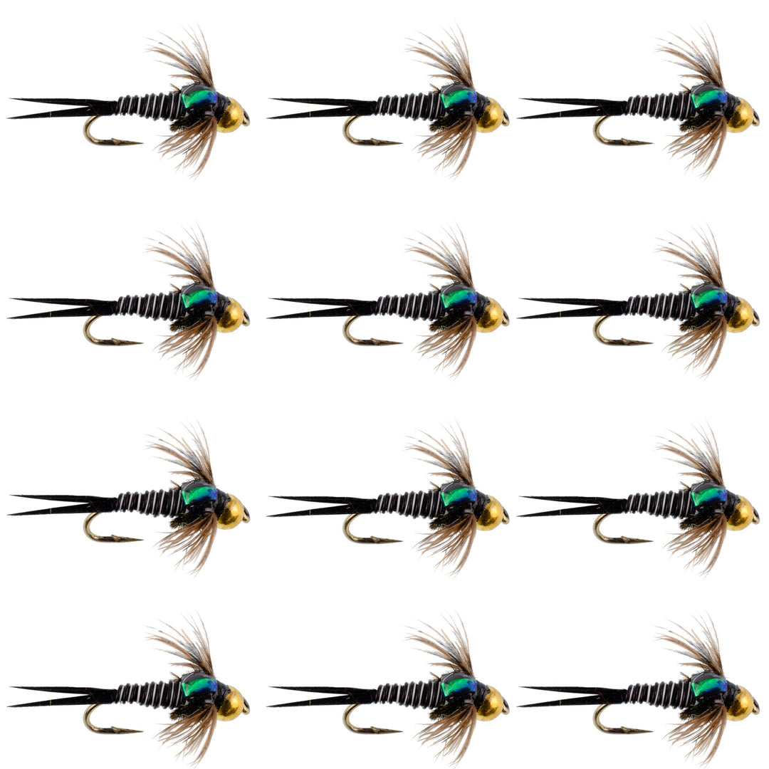Bead Head Zebra Copper John Nymph Fly Fishing Flies - 1 Dozen Flies Hook Size 16
