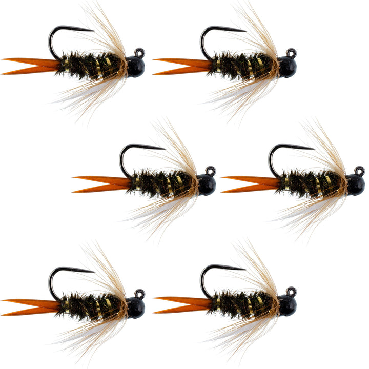 Black Tungsten Bead Prince Jig Tactical Czech Nymph Euro Nymphing Fly - 6 Flies Size 12