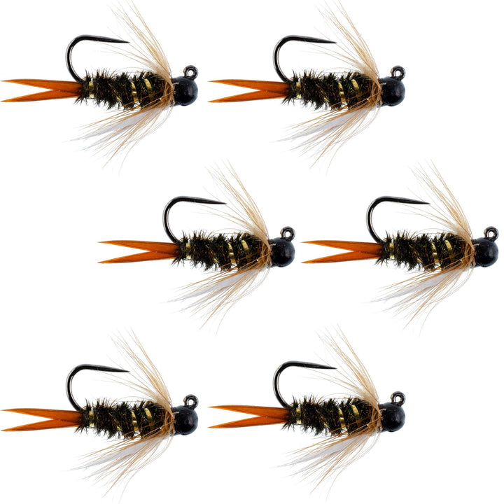Black Tungsten Bead Prince Jig Tactical Czech Nymph Euro Nymphing Fly - 6 Flies Size 16